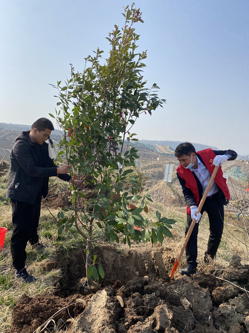 在巢東礦區(qū)植樹點(diǎn),公司職工揮锨鏟土、挖坑放苗、培土踩實、提水澆苗。所有人員熱情高漲,團(tuán)結(jié)合作,干勁十足,認(rèn)真細(xì)致、一絲不茍,整個勞動場面繁忙有序。在大家的共同努力下,新植的樹苗屹立在了春風(fēng)中,原本空曠的土地變得生機(jī)勃勃。