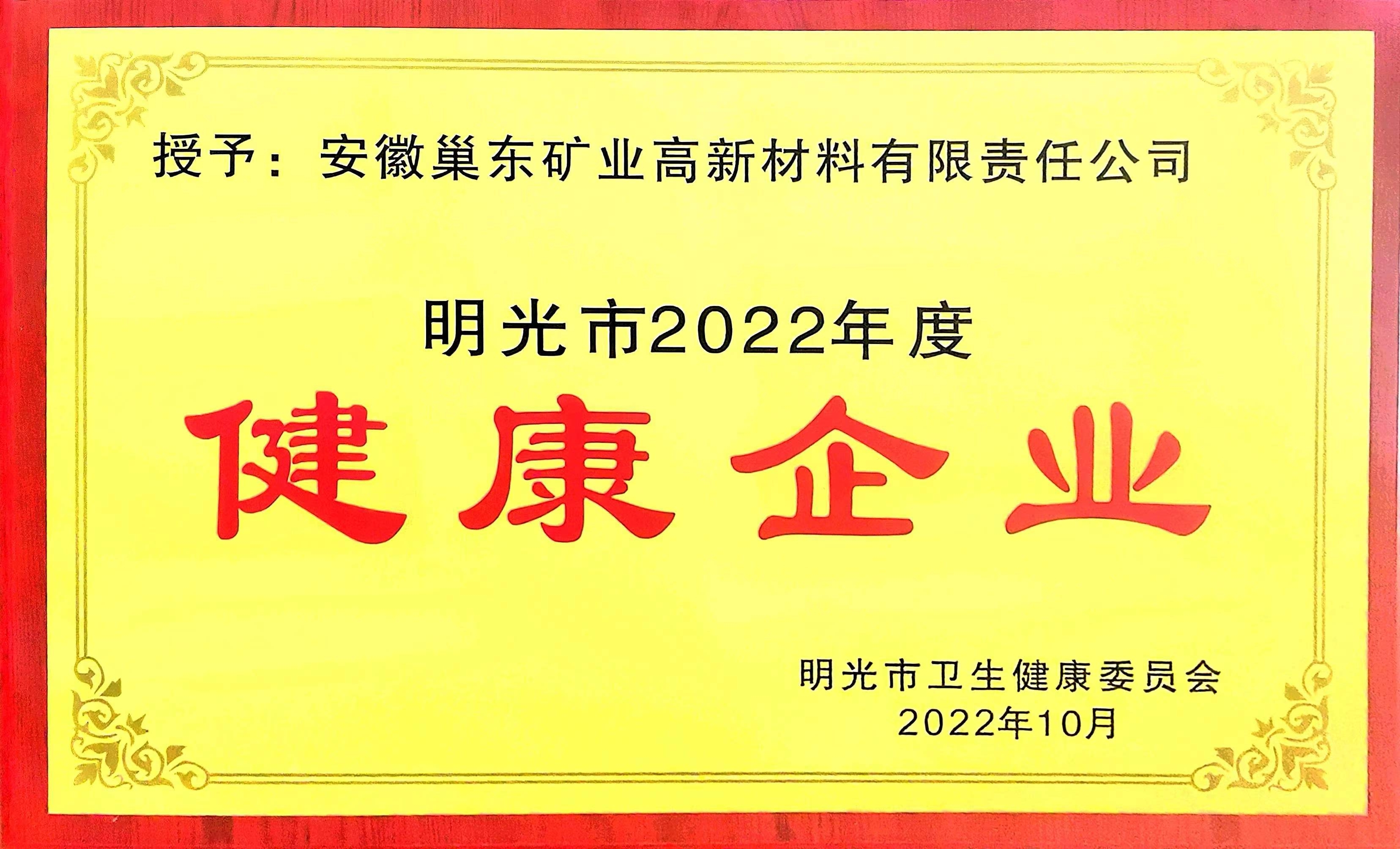 3月17日,2022年明光市健康企業(yè)表彰儀式在明光市舉行,滁州市興明礦業(yè)有限公司下屬全資子公司安徽巢東礦業(yè)高新材料有限責任公司榮獲“2022年度明光市健康企業(yè)”榮譽稱號。