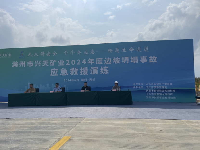 為提高突發(fā)事件應對能力,檢驗突發(fā)事件應急預案可操作性,6月27日,興天礦業(yè)組織開展邊坡坍塌事故應急救援演練,天長市自然資源和規(guī)劃局以及金集鎮(zhèn)政府受邀蒞臨指導。